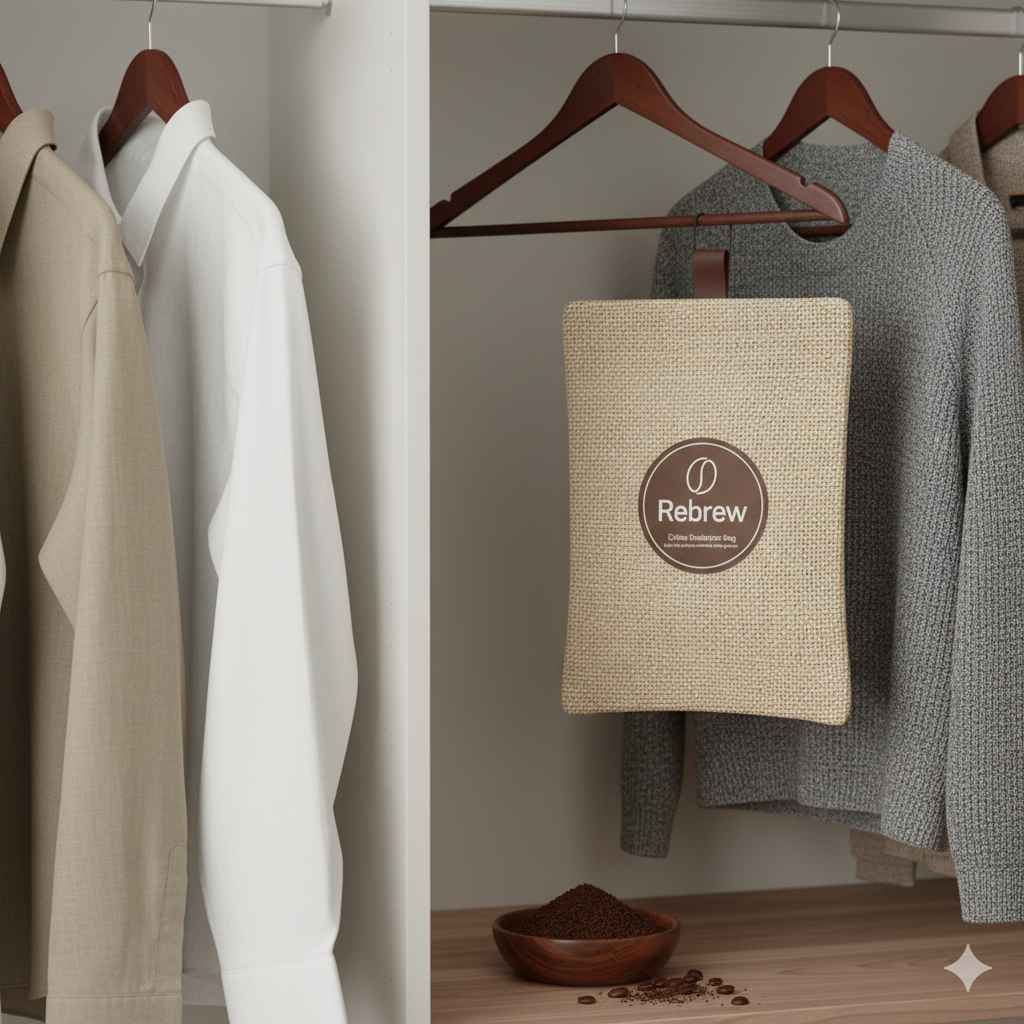 - ดูดกลิ่นอับชื้น คืนความหอมสดชื่น! ถุงดูดกลิ่นจากกากกาแฟออร์แกนิก 100% ปลอดภัย ไร้สารเคมี สำหรับตู้เย็น ตู้รองเท้า รถยนต์ หรือห้องน้ำ
