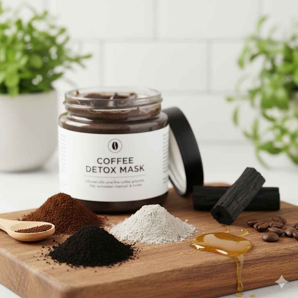 - ดีท็อกซ์ผิวใส! มาส์กหน้าโคลนกากกาแฟ [ระบุส่วนผสม เช่น ชาโคล, โคลนเบนโทไนท์] ดูดซับสิ่งสกปรก ลดสิวอุดตัน กระชับรูขุมขน ลดความมันส่วนเกิน